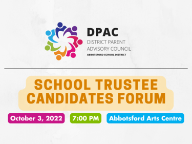 Abbotsford District Parent Advisory Council will be hosting an All Candidates Forum for those vying for seats on the Abbotsford Board of Education.