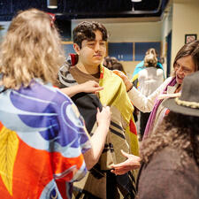 On April 27, 2022, at Abbotsford Arts Centre, the Mamele’awt Community Indigenous Education Centre honoured the 2022 Indigenous Role Models. Before entering, Role Models were covered with a blanket as a way of claiming the students, giving them a warm hug, and helping them on their journey forward, along with a headband to remind them to have good thoughts and a good mind. Chris Silver, Councillor of Semá:th First Nation began the Ceremony with a welcoming song and explained the importance of the Ceremony. Mr. Perry Smith, Director of Curriculum, was the traditional speaker and further explained the meaning of the day and how protocols are in place to ensure the Ceremony is done well, with a good heart and a good mind. Students were brought in by Tyrone Thomas, Jessi Old Coyote, and Tlatsemot leading in an honouring song as the students were brought forward into the space. Each student was honoured on stage by either their Indigenous Support Worker or Teacher for Indigenous Success, who expressed each student's hard work, dedication to culture, and future goals which brought them to be honoured as Role Models. The day was filled with gratitude and inspiration as we celebrate these students' accomplishments. The Honouring Ceremony was live-streamed and can be viewed on the Abbotsford School District YouTube page.